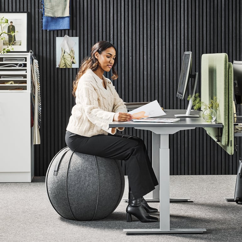 Biroja darbiniekiem, kuri noslogo asteskaulu lielāko darba dienas daļu, ir īpaši svarīgi ik pa laikam mainīt savu darba pozu. Kustība atbrīvo ķermeņa muskuļus un locītavas. Aizstājot biroja krēslu ar līdzsvara bumbu, seglu krēslu vai trenažieri, būs iespēja izkustēties darba laikā. Aktīva sēdēšana uzlabo arī stāju, samazinot muguras lejasdaļas sāpju risku.