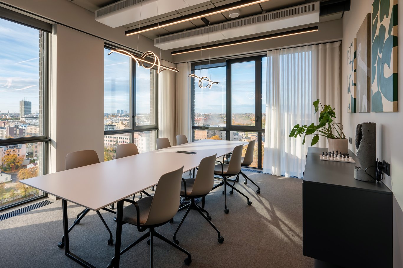 Klātienes tikšanās reizēm Nexpay atvēlēja plašu konferenču telpu ar panorāmas skatu uz Rīgu.
