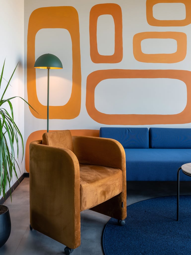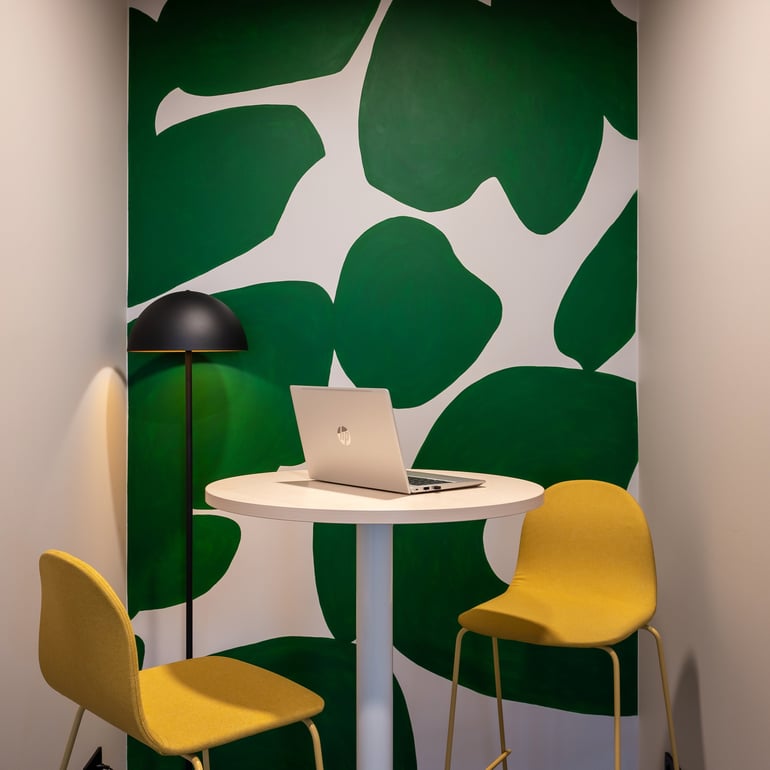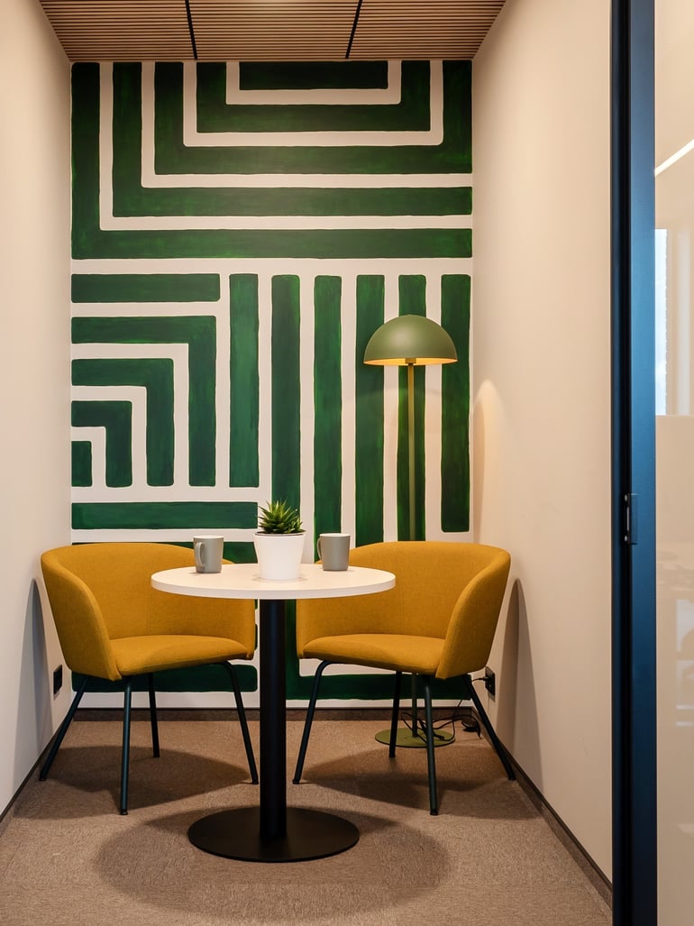 Kristiāna Pētersone, Nexpay personāldaļas vadītājaLiela daļa uzņēmuma ikdienas notiek videozvanos ar klientiem, tāpēc īpaša uzmanība tika pievērsta klusas un patīkamas vides radīšanai sarunām. Šim nolūkam tika izveidotas kompaktas tikšanās telpas ar mākslinieces Radmilas Lipskas sienu gleznojumiem.