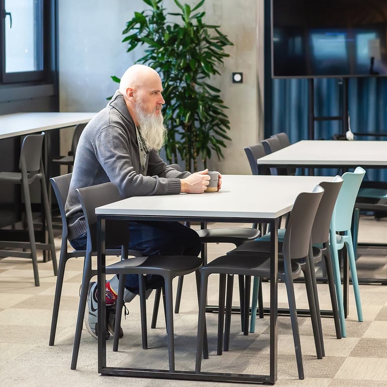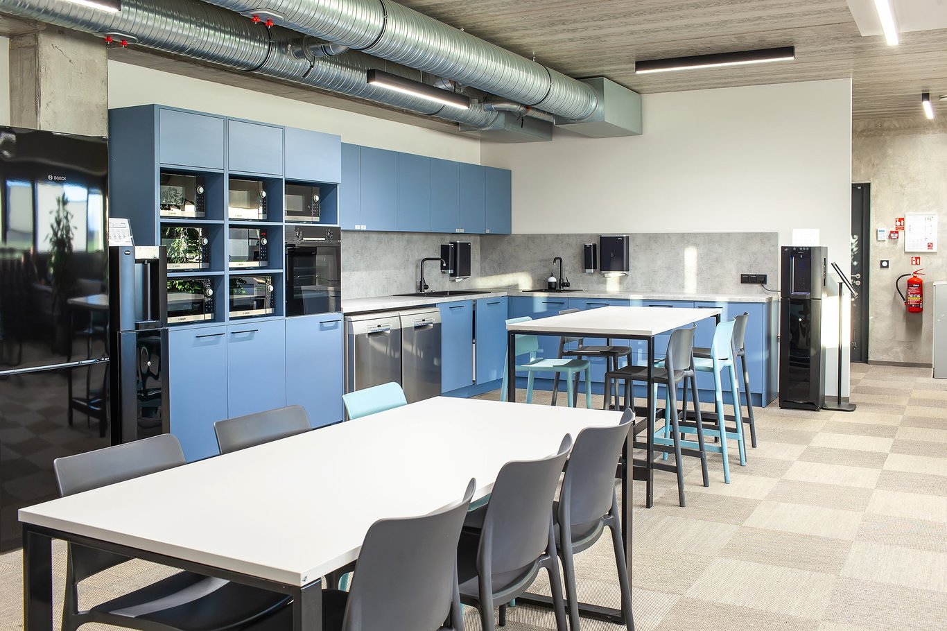 AJ Produkti projektētā virtuve ir pilnībā aprīkota, lai dienas laikā nodrošinātu pusdienas 270 darbiniekiem. Ēdamgaldi no lamināta un sakraujamie polipropilēna krēsli RIO ir speciāli paredzēti sabiedriskām telpām ar augstu noslodzi, kas sekmēs darbinieku ēdnīcas ilgmūžību.