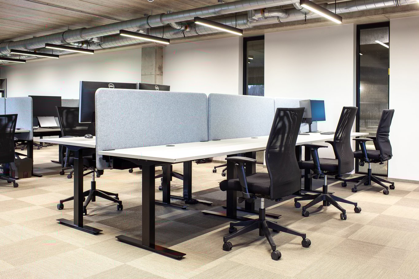 Visas biroja darba vietas ir standatizētas un ietver fiksēta vai regulējama augstuma galdu, pielāgojamu ergonomisku biroja krēslu, akustiskās galdu starpsienas un kabeļu sakārtošanas risinājumus bez papildu uzglabāšanas vietas. Standartizācija ļauj darbiniekiem izvēlēties darba uzdevumiem piemērotāko darba vietu, kā arī uzturēt kārtību birojā un laicīgi atbrīvoties no nevajadzīgajām mantām.