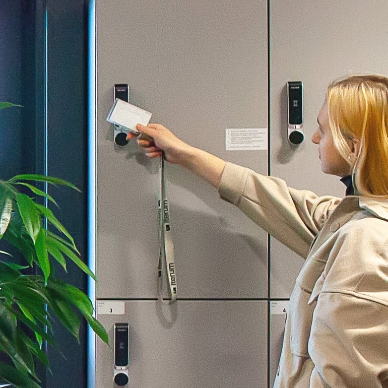 Darbinieku ērtībai mēs ieviesām unikālu uzglabāšanas risinājumu: skapīšu durvis, kas ir aizslēdzamas ar darbinieku kartes čipu. Līdzīgi kā baseinos un citās sabiedriskās vietās, šis risinājums ļauj izvēlēties jebkuru brīvo skapīti, lai droši glabātu savas mantas neatkarīgi no darba vietas.