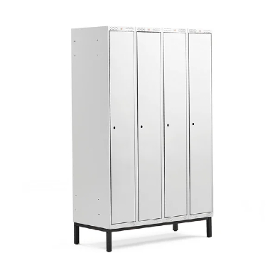 Garderobes skapis ar pamatnes rāmi, cepuru plauktu un stieni ar diviem āķiem apģērba iekāršanai. Skapja augšējā un apakšējā daļā ir izveidotas ventilācijas atveres. Durvis aprīkotas ar atduri un klusinošiem gumijas elementiem. Tērauda skapjos var ērti uzglabāt apģērbu un dažādas personīgās mantas. Tie piemēroti novietošanai darbavietās, sporta zālēs, skolās, izstāžu zāļu tuvumā un citās sabiedriskās vietās.