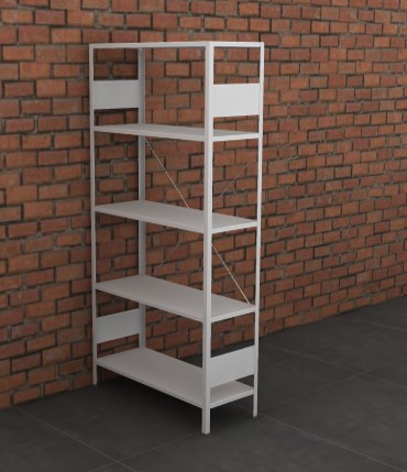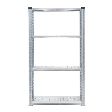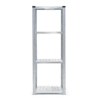 Apraksts | Konstrukcija balstās uz 4 statņiem ar plastikāta pamatnēm. Aizmugurē savienoti ar krusteniskām atsaitēm. Plauktu regulēšanas solis 40mm |