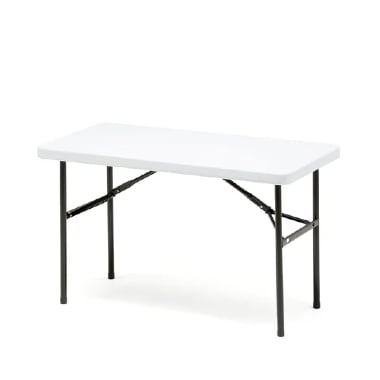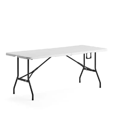 Salokāms galds ar rokturi pārnēsāšanai. Salokāms vidusdaļā, tādēļ tas ir ērti uzglabājams un pārvietojams. Šī salokāmā mēbele ir ideāls risinājums izstāžu vai ballīšu rīkošanai iekštelpās vai ārtelpās.