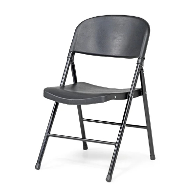 Salokāms krēsls ar plastmasas sēdekli un atzveltni. Krēsla priekšējās un aizmugurējās kājas aprīkotas ar papildu stiprinājumiem maksimālai stabilitātei.