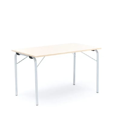 Praktisks saliekamais galds ar HPL virsmu un sudrabotu kāju rāmi.